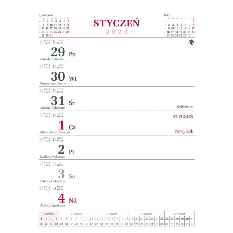 Kalendarz biurkowy stojący ze spiralką PIONOWY 2026