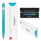 Długopis 849 szwajcarskiej marki Caran d’Ache z kolekcji Colormat-X, kolor turkusowy w pudełku Slimpack.