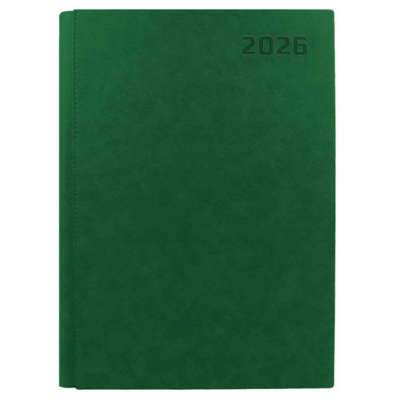 Kalendarz książkowy Manhatan A5 2026 układ dzienny zielony MH05 z miejscem na długopis