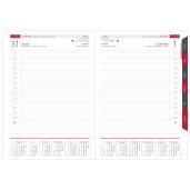 • Terminarz w układzie dziennym, drukowany na papierze kremowym. Kolor druku szary i bordowy