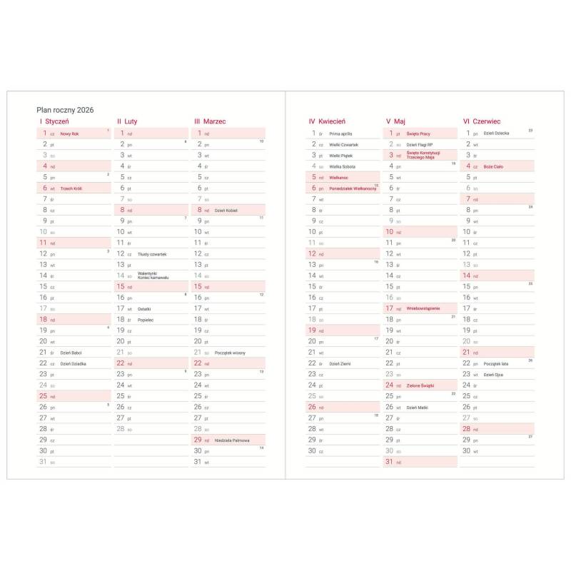 Kalendarz książkowy Combo B5 2026 układ dzienny C714