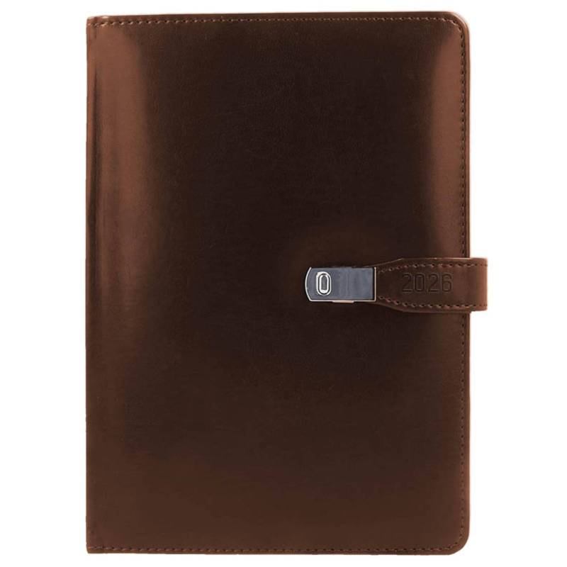 Kalendarz książkowy Napoli A5 2026 układ dzienny brązowy NP05 zapięcie magnetyczne