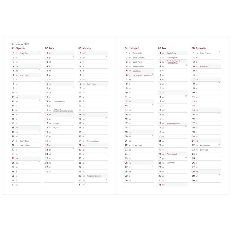 • Terminarz w układzie dziennym, drukowany na białym papierze. Registry drukowane.