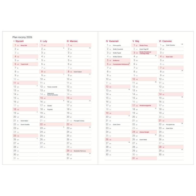 • Terminarz książkowy zawiera m.in.: