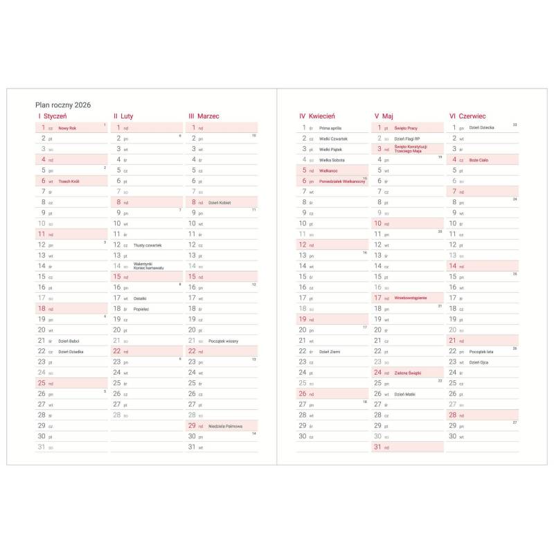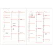 • Terminarz w układzie dziennym, drukowany na papierze kremowym. Kolor druku szary i bordowy