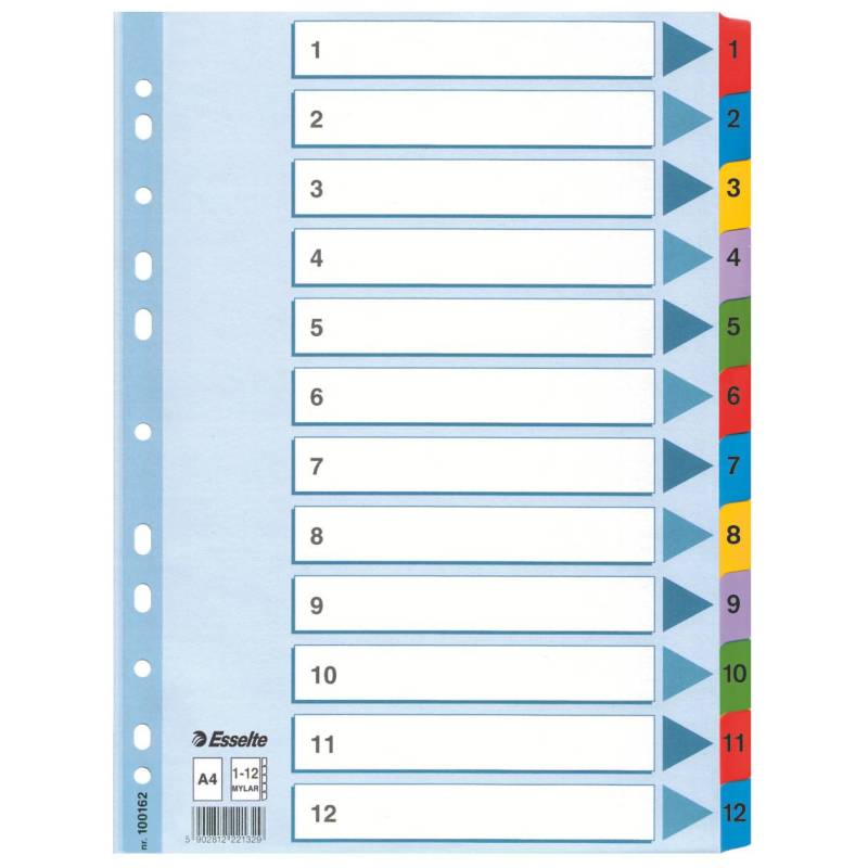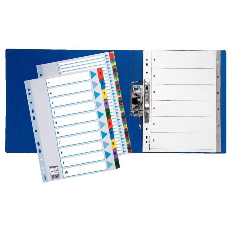 Koszulka Esselte format A4, z kolorowymi indeksami, opakowanie zawiera 8 sztuk.